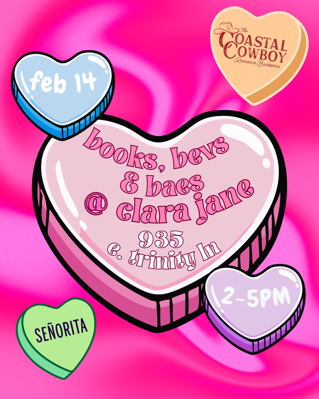 Saturday, February 14th 2-5PM The Coastal Cowboy Romance-Only Bookstore will be popping up at this very special Books & Bevs Happy Hour at Clara Jane! Fall in love with a […]